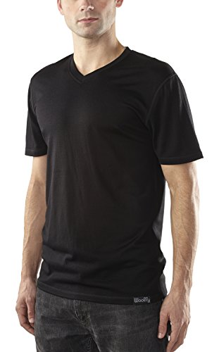 Best Seller! Woolly Clothing Co Men's Merino Wool Short Sleeve V-Neck X-Large Black With Colored Threading Review